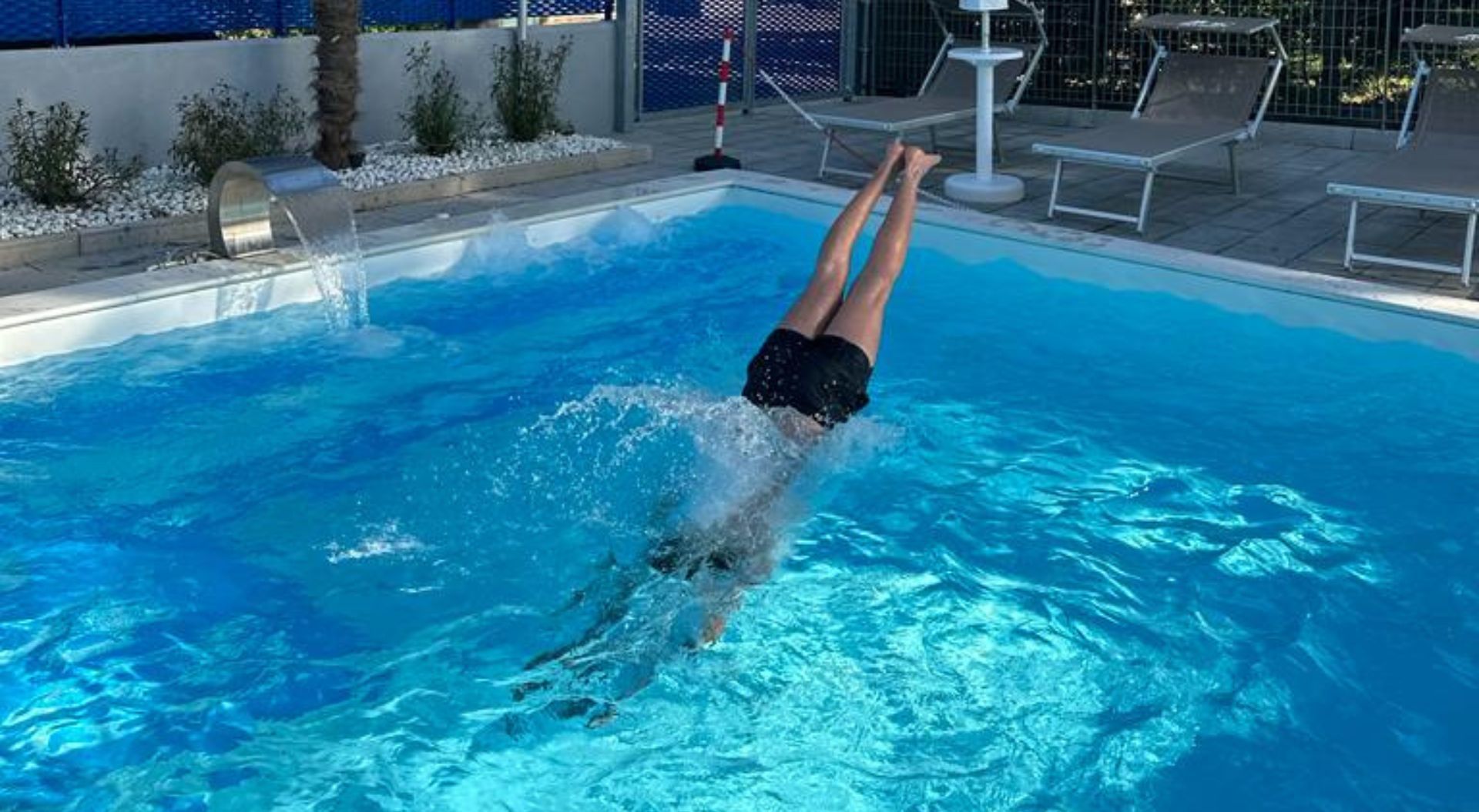 La nostra modernissima piscina vi attende, offrendovi un luogo ideale per rinfrescarvi e rilassarvi. Dotata di idromassaggio e una suggestiva cascata cervicale, vi regalerà momenti di puro piacere. Un comodo Solarium con lettini e ombrelloni è a vostra disposizione per concedervi piacevoli pause.